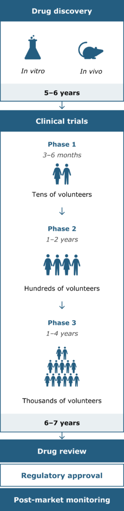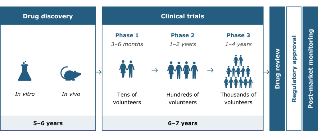 Clinical development, or drug development, refers to the entire process of bringing a new treatment to the market. The path to approval is typically a long journey – around 10 to 15 years, and usually costs hundreds of millions of dollars.9
